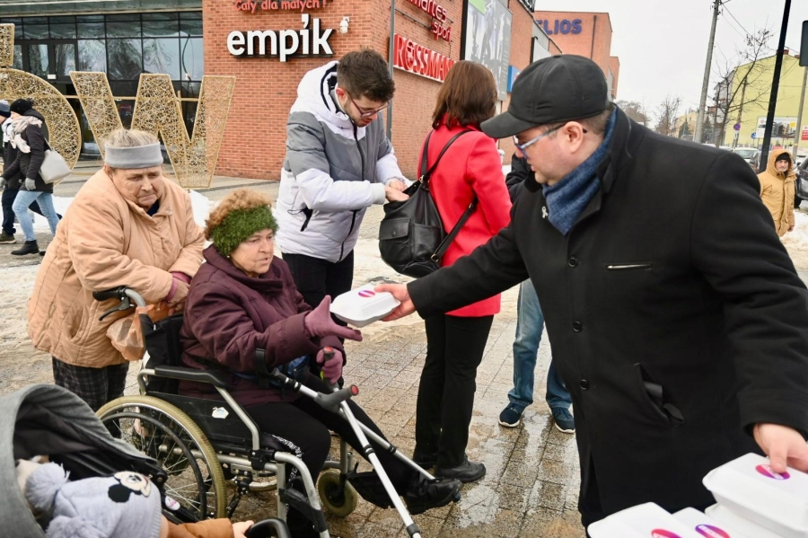 "To już stało się pewnego rodzaju naszą tradycją lewicową, że po prostu dzielimy się posiłkiem. W Łodzi dzielimy się już od kilkunastu lat, ale kilka lat temu rozpoczęliśmy taką akcję w całym województwie łódzkim. W poprzednich latach byliśmy w Zduńskiej Woli, Sieradzu, Piotrkowie Trybunalskim, Tomaszowie Mazowieckim i innych miastach, a dzisiaj naszą wyprawę zaczęliśmy od Skierniewic, a teraz jesteśmy w Rawie Mazowieckiej i będziemy jeszcze w Tomaszowie Mazowieckim. Dzielimy się posiłkiem, który składa się z ciepłego barszczu z uszkami, wegetariańskiej kapusty z grochem, pierogów z kapustą i grzybami, a także słodkiego ciasta. Chcemy tym też wskazać na pewien problem. Problem ubóstwa, który rozpowszechnia się w Polsce. Z raportu wynika, że poziom ubóstwa w Polsce rośnie. Chcemy uczulić wszystkich tych, którzy mogą sobie pozwolić na to, żeby podzielić się posiłkiem lub czymkolwiek innym, chociażby dobrym słowem, chociażby jakimś prezentem, żeby również dzielili się z innymi, bo dzielenie się daje radość nam wszystkim" - stwierdziła posłanka Anita Sowińska.