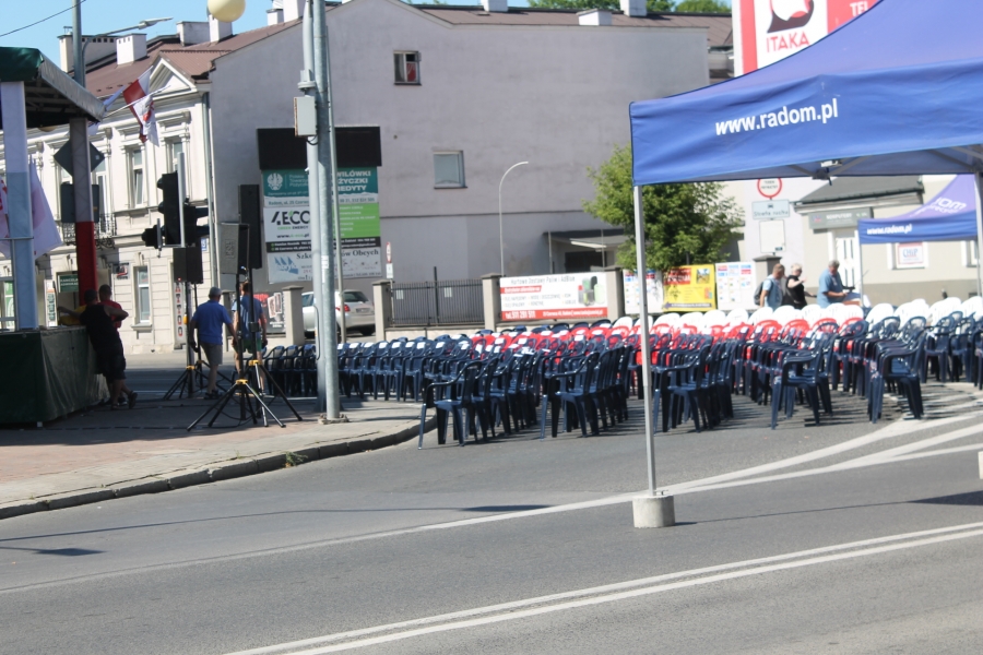 Dziś, 25 czerwca od wczesnych godzin rannych  wyczuwało się w Radomiu  świąteczną atmosferę. Policja i straż prezydencka  czuwały nad przestrzeganiem zakazu ruchu  samochodów i innych pojazdów  na skrzyżowaniu ulic 25 Czerwca i Żeromskiego.